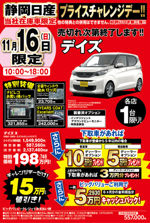 店舗ブログ 沼津店 西条店 清水町店 御殿場萩原店 函南店 大仁店 熱海店 伊東店 下田店 富士店 富士青葉店 鷹岡店 富士宮店 静岡国吉田店 千代田店 清水店 清水港店 登呂店 SBS通り店 藤枝店 藤枝立花店 焼津道原店 焼津インター店 細江店 本部 平和店 清水町カープラザ 鷹岡カープラザ 藤枝カープラザ 千代田カープラザ店 SBS通りカープラザ店 2025/11/16 登呂店 静岡日産★チャレンジデー!! こんにちは!登呂店です  ... 続きを読む > 2025/11/16 静岡国吉田店 11/16はチェレンジデー! みなさま、こんにちは。静岡日産です。 3週に渡ってお買い得車をご案内しているチャレンジデーですが、 いよいよ... 続きを読む > 2025/11/15 清水町店 おにぎり🍙⑧ 清水町店です 本日でおにぎりアクション最終日・゜゜・(/□\*)・゜゜・ ... 続きを読む > 2025/11/15 千代田店 悩めるカーライフに一筋の光!・・・ こんにちは千代田店です  ... 続きを読む > 2025/11/14 焼津道原店 ☆おにぎりアクション☆ こんにちは 焼津道原店です。 11月8日から秋の感謝祭を開催しています ... 続きを読む > 2025/11/13 西条店 未来の車について・・小話です・・・ 皆様こんにちは^^ 静岡日産西条店です。 先日、小学校高学年のむすこの小学校に、某自動車メーカーさんが車につ... 続きを読む > 2025/11/13 富士店 大抽選会やってます こんにちは富士店です。 ただ今 静岡日産秋祭り ... 続きを読む > 2025/11/10 清水港店 ありがとうございました!! こんにちは 清水港店です 11月8... 続きを読む > 2025/11/10 登呂店 ありがとうございました!! こんにちは!登呂店です  ... 続きを読む > 2025/11/10 清水町店 おにぎり🍙⑦ 清水町店です おにぎりアクションも日数が残り少なくなってきました。゚(T^... 続きを読む > 2025/11/09 伊東店 感謝祭、中盤に差し掛かりまし・・・ こんにちは 伊東店です。 感謝祭、昨日と本日の2日間のみ焼きそば&フランクフルト お渡ししてます &n... 続きを読む > 2025/11/09 焼津道原店 ☆感謝祭☆ 本日もたくさんのお客様にご来店いただいています 雨の中ありがとうございます... 続きを読む > 2025/11/09 登呂店 静岡日産★チャレンジデー!! こんにちは!登呂店です ≪≪緊急仕... 続きを読む > 2025/11/09 焼津道原店 ☆プライスチャレンジデー☆ こんにちは 焼津道原店です 本日は当社在庫車限定で〖オーラ〗が40万円値引き  ... 続きを読む > 2025/11/09 藤枝立花店 美味しそう(^^) 藤枝立花店でも焼きそば焼いてます~😋💕 ... 続きを読む > 2025/11/09 平和店 やきそば!! こんにちは 平和店です 本日もやきそば焼いてます ... 続きを読む > 2025/11/09 登呂店 やきそば大盛況~!! こんにちは!登呂店です  ... 続きを読む > 2025/11/09 清水店 作ってるよーーὠ・・・ こんにちは清水店です(^^)/ 今日は焼きそばday最終日 ... 続きを読む > 2025/11/09 沼津店 秋祭りフェア♩ こんにちは、沼津店です  ... 続きを読む > 2025/11/09 下田店 秋のお客様感謝祭〈チャレンジ・・・ 秋のお客様感... 続きを読む > 1 2 3 4 5 6 7 8 9 10 ... 1744 >