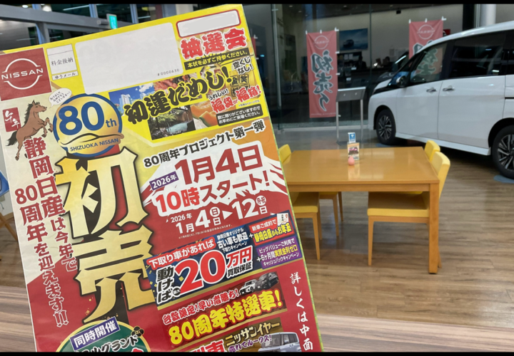 店舗ブログ 沼津店 西条店 清水町店 御殿場萩原店 函南店 大仁店 熱海店 伊東店 下田店 富士店 富士青葉店 鷹岡店 富士宮店 静岡国吉田店 千代田店 清水店 清水港店 登呂店 SBS通り店 藤枝店 藤枝立花店 焼津道原店 焼津インター店 細江店 本部 平和店 清水町カープラザ 鷹岡カープラザ 藤枝カープラザ 千代田カープラザ店 SBS通りカープラザ店 2026/01/12 登呂店 いつのまに降臨✨・・・ こんにちは!登呂店です  ... 続きを読む > 2026/01/12 焼津道原店 初売り&抽選会 最終日・・・ こんにちは 焼津道原店です 1月4日から始まった初売り&抽選会が本日最終日となります &... 続きを読む > 2026/01/12 SBS通り店 初売り 最終日! こんにちは。SBS通... 続きを読む > 2026/01/11 千代田店 静岡も雪国に・・・!?!? こんにちは千代田店です  ... 続きを読む > 2026/01/11 焼津道原店 新春初売り こんにちは 焼津道原店です 本日の焼津市は強風です お車の乗り降りの際はお気を付け下さい... 続きを読む > 2026/01/10 静岡国吉田店 初売りフェア 残り2日! 皆さま、こんにちは。 1/4から始まった2026年初売りフェアも、あと2日となりました 静岡日産では80周年... 続きを読む > 2026/01/10 藤枝店 12日までです ご来店くださ・・・ こんにちは 4日から初売りがスタートしております ... 続きを読む > 2026/01/10 藤枝立花店 12日まで!! 遅くなってしまいましたがあけましておめでとうございま... 続きを読む > 2026/01/09 清水港店 静岡日産 新春初売り 12日・・・ こんにちは 清水港です  ... 続きを読む > 2026/01/09 SBS通り店 初売りは12日まで! こんにちは、SBS通り店です。 年... 続きを読む > 2026/01/09 平和店 初売りフェアもあと3日! こんにちは 平和店です ★本年もよろしくお願いいたします★ &nbs... 続きを読む > 2026/01/09 登呂店 2026🐎初・・・ 登呂店です &... 続きを読む > 2026/01/09 富士店 抽選会やってます こんにちは富士店です ただ今静岡日産で 「初 売 り」 &nb... 続きを読む > 2026/01/08 鷹岡店 初運だめし! 初売りフェア・・・ 鷹岡店です 1/4から初売りフェア開催してます! どうして今日か!? ですか・・・ ... 続きを読む > 2026/01/08 藤枝店 今年もよろしくお願いします。 今年もどうぞ宜しくお願い申し上げます 新春初売りフェア がはじまっております &n... 続きを読む > 2026/01/08 細江店 🎍初売り開催・・・ こんにちは 細江店です 静岡日産では 1月12日 まで... 続きを読む > 2026/01/08 焼津道原店 新型ルークス こんにちは 焼津道原店です お正月気分が薄れ、いつもの毎日が戻ってきました みなさまはい... 続きを読む > 2026/01/05 千代田店 午年!あけましておめでとうご・・・ こんにちは千代田店です  ... 続きを読む > 2026/01/04 富士店 あけましておめでとうございま・・・ あけましておめでとうございます ... 続きを読む > 2026/01/04 清水港店 あけましておめでとうございま・・・ 新年あけましておめでとうございます &nb... 続きを読む > 1 2 3 4 5 6 7 8 9 10 ... 1748 >
