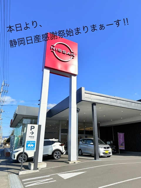 店舗ブログ 沼津店 西条店 清水町店 御殿場萩原店 函南店 大仁店 熱海店 伊東店 下田店 富士店 富士青葉店 鷹岡店 富士宮店 静岡国吉田店 千代田店 清水店 清水港店 登呂店 SBS通り店 藤枝店 藤枝立花店 焼津道原店 焼津インター店 細江店 本部 平和店 清水町カープラザ 鷹岡カープラザ 藤枝カープラザ 千代田カープラザ店 SBS通りカープラザ店 2026/02/06 登呂店 だけじゃない (゜ω゜)・・・ 登呂店です &... 続きを読む > 2026/02/06 登呂店 ◆YAKISOBA!!開催◆ こんにちは!登呂店です  ... 続きを読む > 2026/02/06 SBS通り店 2日間限定 やきそば焼きます・・・ こんにちは。SBS通り店です。 今... 続きを読む > 2026/02/06 富士店 焼きます! こんにちは富士店です。 2/7(土)と8日(日)は 焼いて焼いて焼きまくる日です ... 続きを読む > 2026/02/06 焼津道原店 みんなで食べに来てね! こんにちは 焼津道原店です 2/7(土)・8(日)の二日間 焼きそば... 続きを読む > 2026/02/05 焼津道原店 日産車のテールランプ みなさまこんにちは 焼津道原店です 本日は日産車のテールランプをまとめてみ... 続きを読む > 2026/02/05 富士店 抽選会やってます! こんにちは富士店です。 ただ今 「80周年感謝祭」  ... 続きを読む > 2026/02/02 清水港店 愛情込めて焼きます♡ こんにちは 清水港です  ... 続きを読む > 2026/02/02 富士店 車検予約会開催中! こんにちは富士店です。 静岡日産では1/31(土)から2/15(日)の期間中  ... 続きを読む > 2026/02/02 SBS通り店 80周年感謝祭 開催中! こんにちは、SBS通り店です。 &... 続きを読む > 2026/02/02 登呂店 80周年◆感謝祭開催中~!! こんにちは!登呂店です  ... 続きを読む > 2026/02/02 静岡国吉田店 80周年感謝祭、始まっていま・・・ 皆さま、こんにちは。静岡日産です。 1/31より80周年プロジェクトとして 当社指定特別装備付きのクルマを、... 続きを読む > 2026/02/02 千代田店 開催中(^^) こんにちは!千代田店です &nbs... 続きを読む > 2026/02/02 函南店 わくわくエコスクール・・・ こんにちは!函南店です🐤... 続きを読む > 2026/02/01 鷹岡店 感謝祭 開催中です! 鷹岡店です 80周年感謝祭開催中です フェア中恒例の 抽選会もやってます! ... 続きを読む > 2026/02/01 伊東店 感謝祭開催中! 伊東店です。 1月31日(土)より2月15日(日)まで 感謝祭を行っています ... 続きを読む > 2026/02/01 焼津道原店 感謝祭‼ こんにちは 焼津道原店です 1/31(土)~2/15(日)まで感謝祭を開催しています &... 続きを読む > 2026/02/01 大仁店 お客様感謝祭開催中 1/31(土)より2/15(日)まで お客様感謝祭を開催しております ... 続きを読む > 2026/02/01 清水港店 感謝祭スタート!! こんにちは 清水港です 今日は朝か... 続きを読む > 2026/01/31 細江店 💘80周年感・・・ こんにちは 細江店です 明日1月31日から2月15日ま... 続きを読む > 1 2 3 4 5 6 7 8 9 10 ... 1749 >