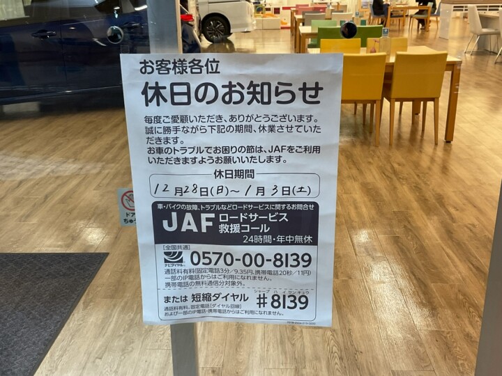 静岡日産各店舗の末年始休みは
