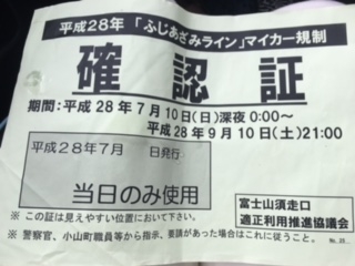 車検証を見せることにより、5合目まで車で上がれます。