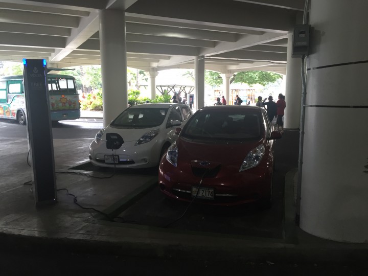 納車のリーフ2台と試乗車のリ-フがズラッと