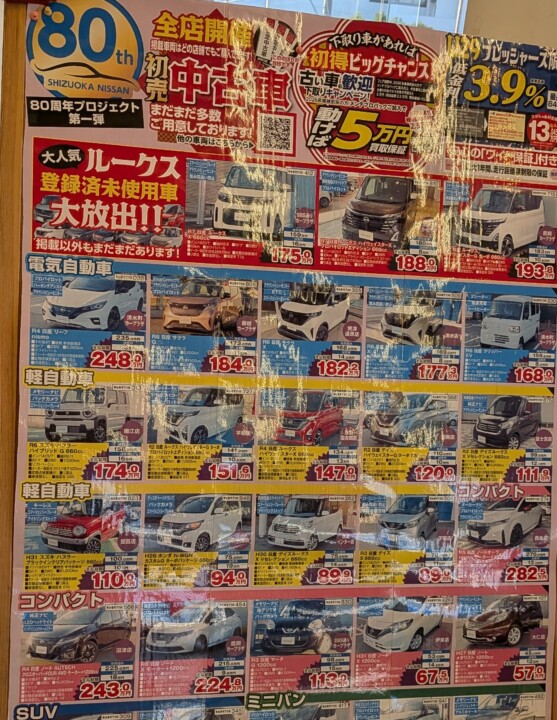 12日までです ご来店くださいませ 2026/01/10 | 藤枝店 ツイート こんにちは 4日から初売りがスタートしております 静岡日産は今年でおかげさまで80周年をむかえることができました 80周年プロジェクトの第一弾として 80周年特選車をご用意しました 新型エルグランド早期予約会 空くじナシの初売り抽選会も大好評です お待ちしております 前の記事へ 次の記事へ