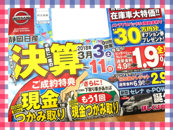 店舗ブログ 沼津店 西条店 清水町店 御殿場萩原店 函南店 大仁店 熱海店 伊東店 下田店 富士店 富士青葉店 鷹岡店 富士宮店 静岡国吉田店 千代田店 清水店 清水港店 登呂店 SBS通り店 藤枝店 藤枝立花店 焼津道原店 焼津インター店 細江店 本部 平和店 清水町カープラザ 鷹岡カープラザ 藤枝カープラザ 千代田カープラザ店 SBS通りカープラザ店 2018/03/20 SBS通り店 その…? こんにちは、杉山です(≡・ω・≡) ... 続きを読む > 2018/03/20 西条店 【西条店★納車式】3/20 こんにちは、西条店です 大安の本日、M様の店頭納車がございました ... 続きを読む > 2018/03/20 千代田店 5月号到着~♪♪ 中古車雑誌グーの5月号が届きました ... 続きを読む > 2018/03/20 千代田店 【千代田店 店頭納車式】☆デ・・・ 3月20日(火)S様の店頭納車がありました  ... 続きを読む > 2018/03/20 藤枝店 ☆静岡日産藤枝店 納車式☆K・・・ こんにちは、藤枝店です! 店長のお姉様のお車ご納車しました &nbs... 続きを読む > 2018/03/20 藤枝店 人気のぽんぽんぽ~~~~ん パスタでぽんぽんぽ~~~~ん なんなのか・・・・ 今週の金曜日の... 続きを読む > 2018/03/20 富士青葉店 【日産 セレナ 納車式 N様・・・ 本日はN様のセレナの納車式をさせていただきました N様、ご納車おめでとうございます ... 続きを読む > 2018/03/20 静岡国吉田店 この顔が今後、活躍するかも・・・・ こんにちは。 坂口です。 本日、大谷が店長の似顔絵のアイコンを 作成しましたが、ブログに... 続きを読む > 2018/03/20 焼津道原店 ~ 展示車 ~ 展示車NOTE e-POWER NISMOが入りました &... 続きを読む > 2018/03/20 大仁店 とうふやデビュー こんにちは! 大仁店杉本です ... 続きを読む > 2018/03/20 清水店 ピクニック♪♪ こんにちは 清水店 稲葉です 先日、静岡県立大学の芝生公園に 家族で... 続きを読む > 2018/03/20 函南店 ♪♪函南店 納車式♪♪Y様 函南店です 2018年3月20日(火)大安Y様の店頭納車式をしました &nb... 続きを読む > 2018/03/20 清水店 DAYZ⇒NOTEe-POW・・・ こんにちは 清水店 稲葉です 清水店ショールームの展示車が、 軽自動... 続きを読む > 2018/03/20 函南店 ♪♪函南店 納車式♪♪S様 函南店です 2018年3月18日(日)S様の店頭納車式をしました  ... 続きを読む > 2018/03/20 西条店 わかりやすく!e-power・・・ こんにちは、西条店 土屋です 突然ですが、今や技術の日産の代名詞といえば、... 続きを読む > 2018/03/20 伊東店 空気を綺麗に♪ 伊東店加来です。 花粉症の方のツライ季節なんですよね うちでは、下の娘だけが花粉症で 鼻ズルズル、目の... 続きを読む > 2018/03/20 熱海店 熱海店 納車式 先日、T様の納車式を行いました おめでとうございます ノートからノート... 続きを読む > 2018/03/20 西条店 晴れろや晴れろ~! おはようございます、西条店 土屋です 本日は大安。 新車のご納車があるわけなのです…なの... 続きを読む > 2018/03/19 平和店 たくさん♪ こんにちは!平和店です  ... 続きを読む > 2018/03/19 沼津店 グルメな友人からのいただきも・・・ 沼津店たけやまです みなさん、『川根大福』をご存知ですか? 私も1年くらい前に始めて出会... 続きを読む > <1 ... 495 496 497 498 499 500 501 502 503 504 ... 1746 >