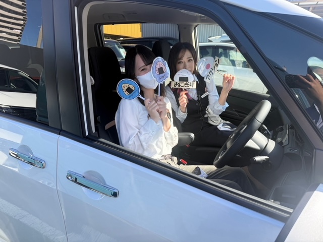 左の運転席にいる琴音CAは、愛らしくほんわかした雰囲気ですが、お客様が来店されると、テキパキ!サササ!とお客様への対応の速さにいつも感動しております^^