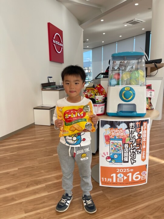 ガチャガチャ! やった~中吉だぁ~ 2025/11/07 | 鷹岡店 ツイート 鷹岡店です こんにちは 秋祭り開催中ですよ~ 元気に僕が ガチャガチャに挑戦です さ~ 何が出るかなぁ! やった~中吉が当たったよ おめでとうございます 少し緊張して カチャ! ゆっくり遊んで行ってね! 静岡日産 鷹岡店 ご連絡先:0545-72-2123 静岡日産ホームページはこちら 新着情報は公式Twitterへどうぞ 前の記事へ 次の記事へ